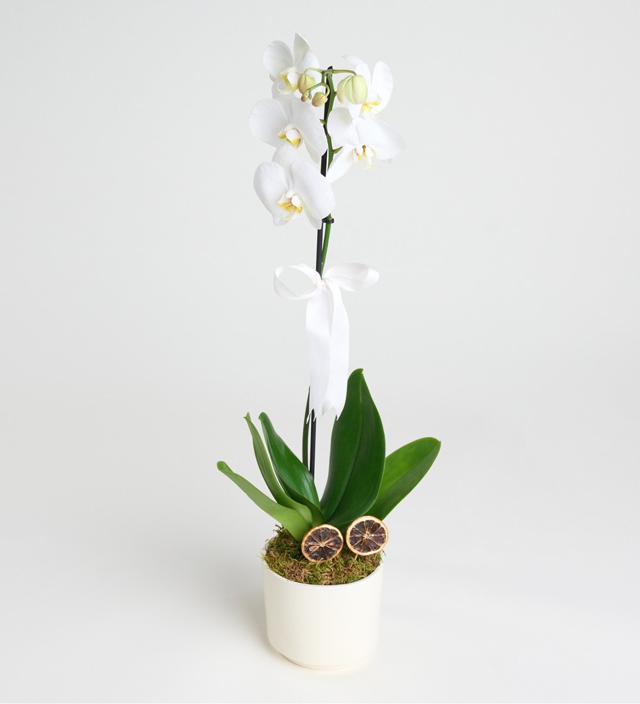 Beyaz Beton Saksıda Tekli Beyaz Phalanopsis Orkide