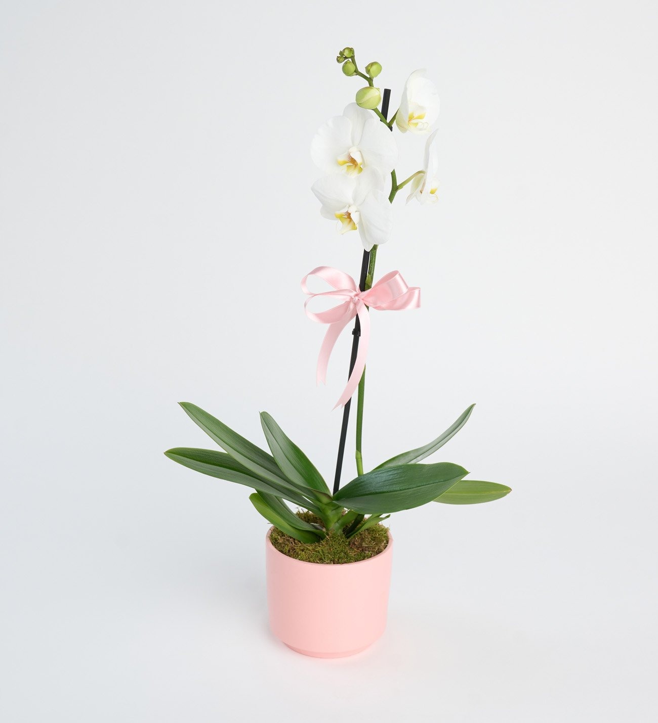 Pembe Beton Saksıda Tekli Beyaz Orkide